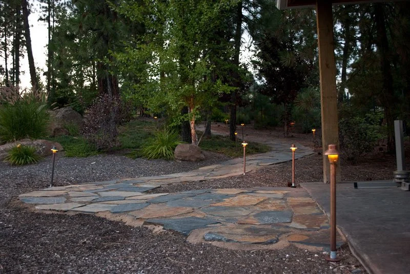 A specialized downlighting technique, moonlighting mimics the natural glow of the moon by positioning soft lights high in trees. The light filters through branches, casting delicate, dappled shadows on the ground. This outdoor lighting technique works beautifully for patios, lawns, and driveways, creating a peaceful and natural ambiance.