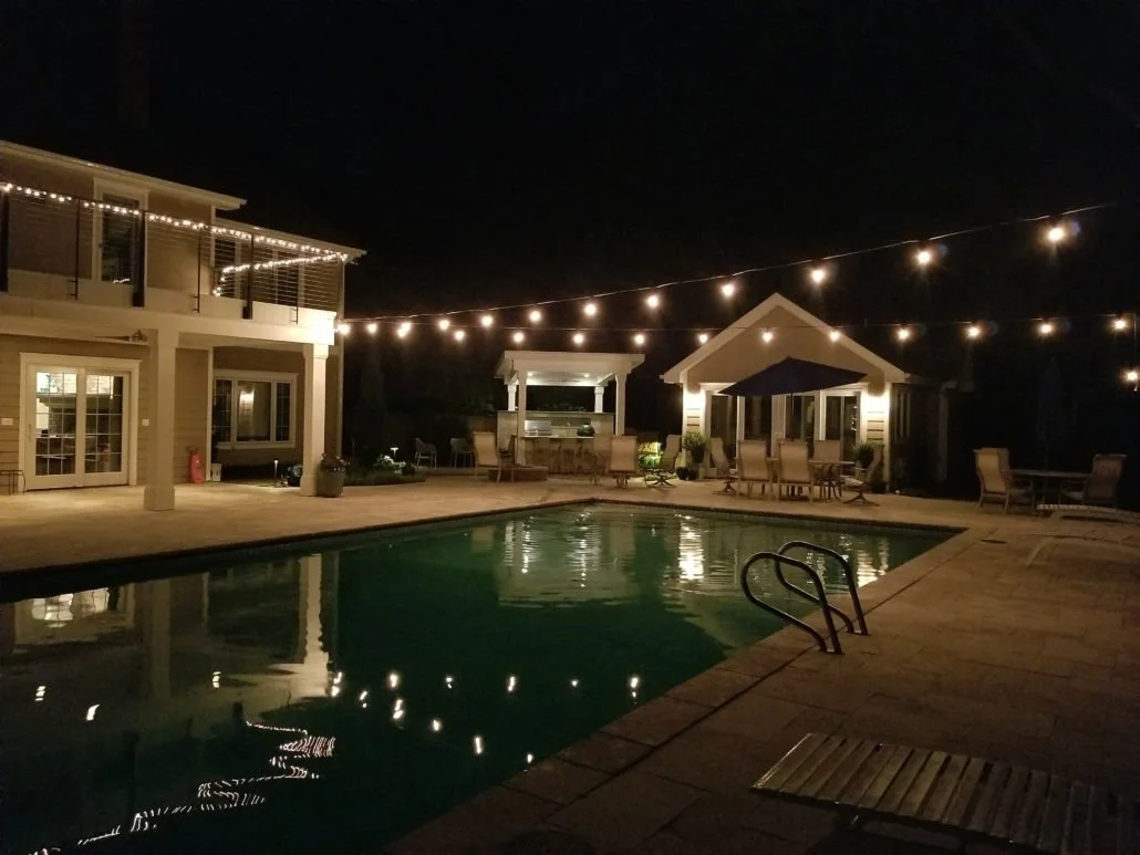 When thinking of areas to put outdoor lights in, think about zones of activity. Do you have a fire pit? A pool? A basketball or tennis court? A fountain you want to show off? Simple lighting along the edges of these spaces can illuminate their design, add dimension, and provide guides in the dark.